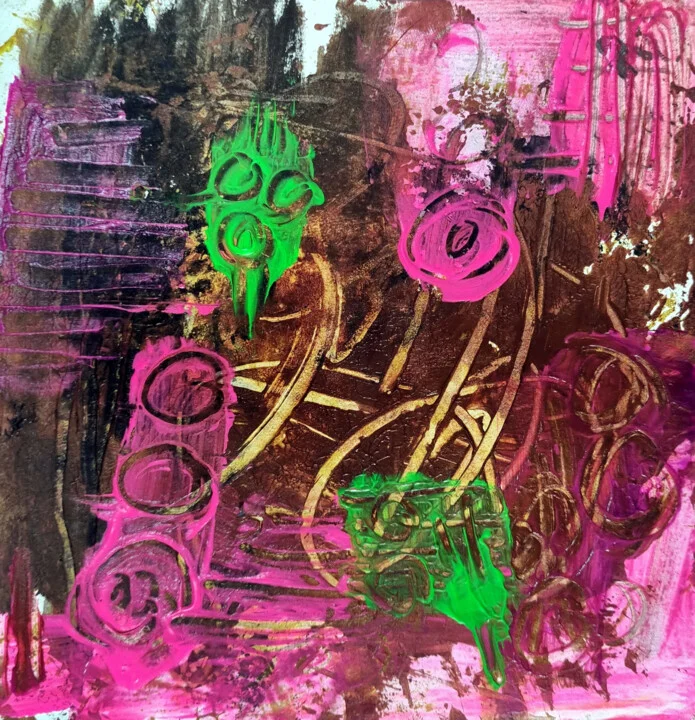 This 20 x 20 cm piece combines rich browns with pops of neon pink and vibrant green. Using a palette knife, I created swirling forms that disrupt the earthy tones, making it feel alive. There's a slight smudge on the edge from my hand brushing over the paint; I love the rawness of that. The thick acrylic catches the light, creating depth with shadows and highlights. Hand-painted original with an engaging texture you’ll want to touch. I painted this during a quiet afternoon, inspired by the interplay of nature and urban life. This 20 x 20 cm artwork would be a striking addition above your modern desk. It's perfect for those who appreciate bold expressions and layered colors. Here if you need it.