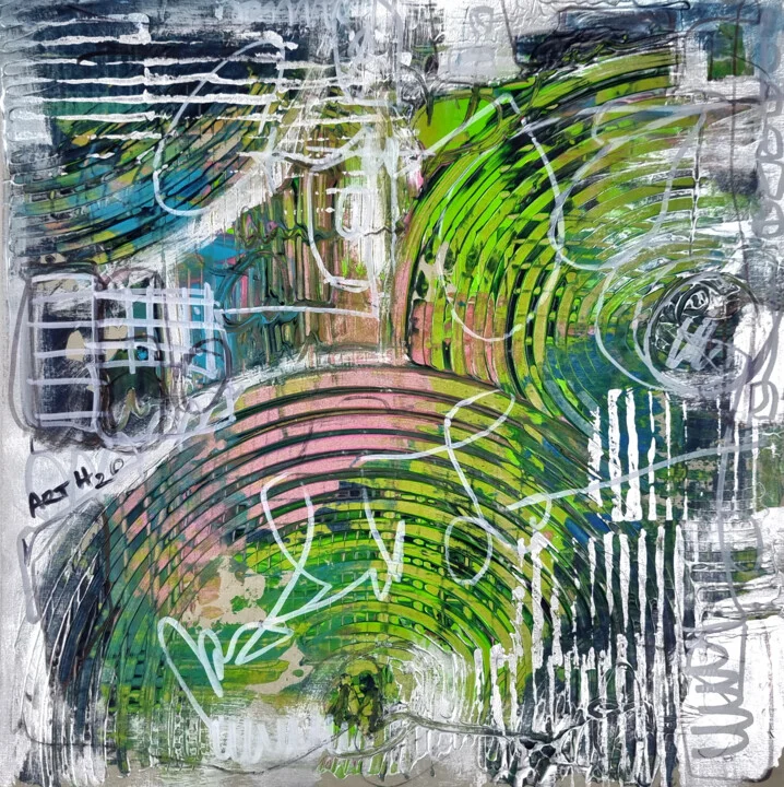 This 30 x 30 cm piece explodes with neon greens and magenta, creating a radar-like effect. I applied paint thickly, and there’s a small drip where it ran across the surface. The metallic background amplifies the colors, reflecting light in a captivating dance. Hand-painted original with an engaging texture that captures attention. As I painted this, I envisioned the future of technology and optics. This 30 x 30 cm artwork would make a perfect centerpiece for a modern living space. Great for lovers of innovation and vibrant aesthetics. Here if you need it.