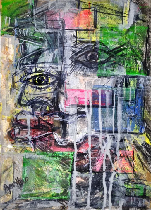 This 29.7 x 42 cm acrylic painting captures an abstracted human face with deep blacks and charcoals. I used fluid strokes to create emotional intensity, layering vibrant colors over the monochrome base. There’s a slight run of color near the eye where I lost control of the paint. The light enhances the depth of the layers, creating a haunting effect. Hand-painted original with raw emotional appeal. I painted this during a reflective moment, wanting to express complex emotions. This 29.7 x 42 cm piece would be a striking focal point above a bed or in an art-filled hallway. Perfect for those who seek depth in their art. Ready when you are.