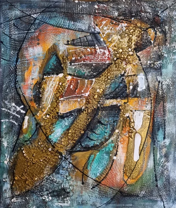 Original title: Geometric Seafarer, Textured Abstract Acrylic Painting