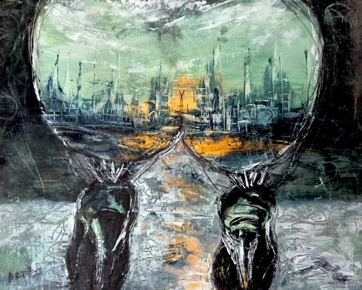 Original title: Metropolis Horizon, Surreal Figurative Urban Landscape