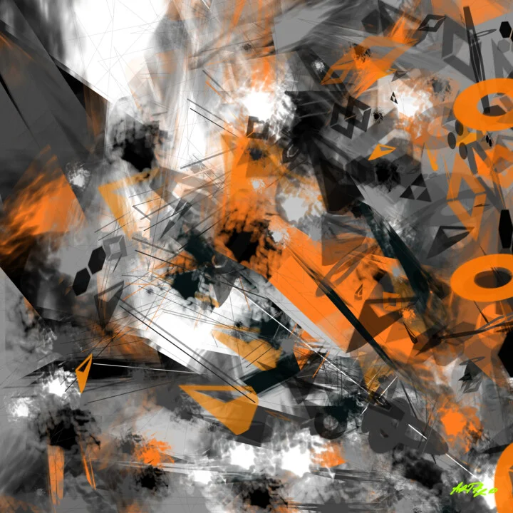 High-contrast orange shards slice through layers of deep gray and white in this 51 x 51 cm digital artwork. I began with a generative mask, and you might notice a slight smudge where I adjusted the layers, adding a touch of uniqueness. The interplay of motion blur and painterly strokes creates depth, while the lime-green pixels offer a signature accent. This piece is designed to catch the eye with its bold shapes and colors, perfect for printing in high resolution. Creating this piece was an experiment in controlled chaos, and it feels alive with tension and motion. Display this 51 x 51 cm artwork in your hallway for a striking focal point. It's perfect for anyone who loves dynamic, abstract designs. Ready for your walls?