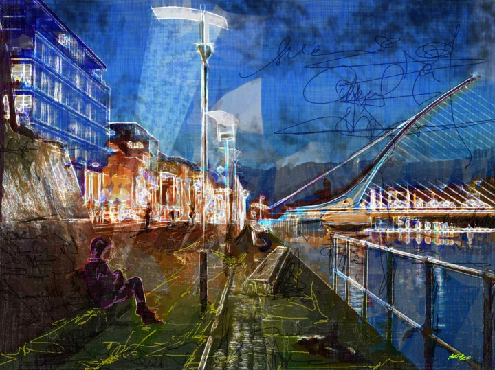 This digital artwork sprawls across an 88.9 x 63.5 cm canvas, blending electric blues with luminous oranges. I played with vibrant hues to convey the pulse of a city at night, using layering techniques to create a sense of depth. There's a slight smudge on the boy's silhouette, a reminder of my hands during the process. The interplay of light creates reflections that seem to dance on the surface. Handcrafted with a digital brush for an authentic urban feel. A late-night stroll along the river sparked this creation, evoking nostalgia for city life. This 88.9 x 63.5 cm piece would make a lively addition above your dining table. It's perfect for someone looking to celebrate urban energy in their space. Here if you need it.