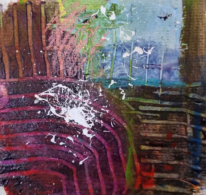 Soft washes of violet intertwine with lush green across this 10 x 10 cm paper. A splash of white ink draws the gaze, contrasting beautifully with the darker hues. There's a distinct smudge at the edge where my finger brushed the wet surface, revealing the raw texture beneath. Light dances on the paper, creating a subtle glow that invites closer inspection. Hand-painted original with an authentic texture you can feel. I began this on a bright summer morning, inspired by the vibrancy of nature. It evokes tranquility, making it ideal for your creative space. This 10 x 10 cm piece would bring calming energy to a small desk area or a gallery wall. Perfect for those who appreciate intricate details and textures. It's ready to add character to your collection.