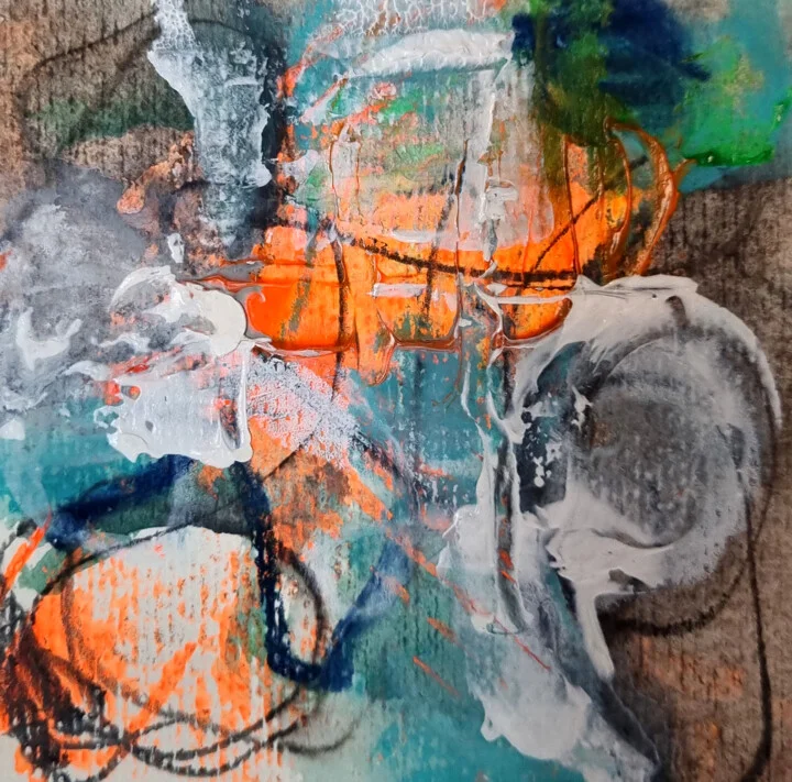This 10 x 10 cm acrylic piece bursts with cerulean and vibrant orange forms layered over a textured background. You can see a faint smudge on the right edge where the paint didn’t quite settle, reminding me that spontaneity is essential. Light catches the glossy areas, giving the fluid strokes an enticing shimmer that contrasts beautifully with the rougher texture beneath. The energetic composition draws the eye across the canvas with sweeping curves that feel organic. Hand-painted original, with texture that comes alive in person. I painted this on a sunny afternoon, inspired by the lively chaos of summer. It radiates a joyful energy that brightens up any space. This 10 x 10 cm abstract would fit perfectly above a small desk or in a cozy reading nook. It's ideal for those who embrace creativity in their surroundings. Ready to bring a burst of color into your life?