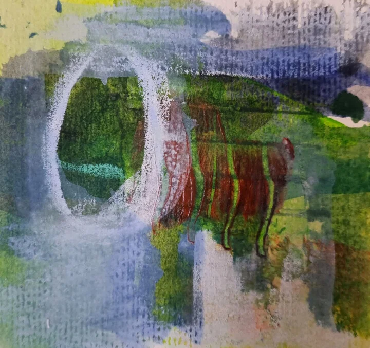 Vivid emerald greens blend with hints of burnt sienna across this 10 x 10 cm paper. You’ll notice a faint smudge on the top left where I brushed my hand against the wet colors, adding a personal touch. The overlapping layers create playful complexity, while soft edges catch the light, casting gentle reflections. The unique circular form pops with contrasting brightness, inviting curiosity. This hand-painted original has a texture you’ll want to experience up close. I began this during a peaceful summer afternoon, inspired by nature’s vibrant beauty. It evokes tranquility and exploration. This 10 x 10 cm drawing would fit beautifully above a small desk or in a cozy reading nook. Perfect for someone who enjoys nature-inspired art. Let it bring calm to your space.