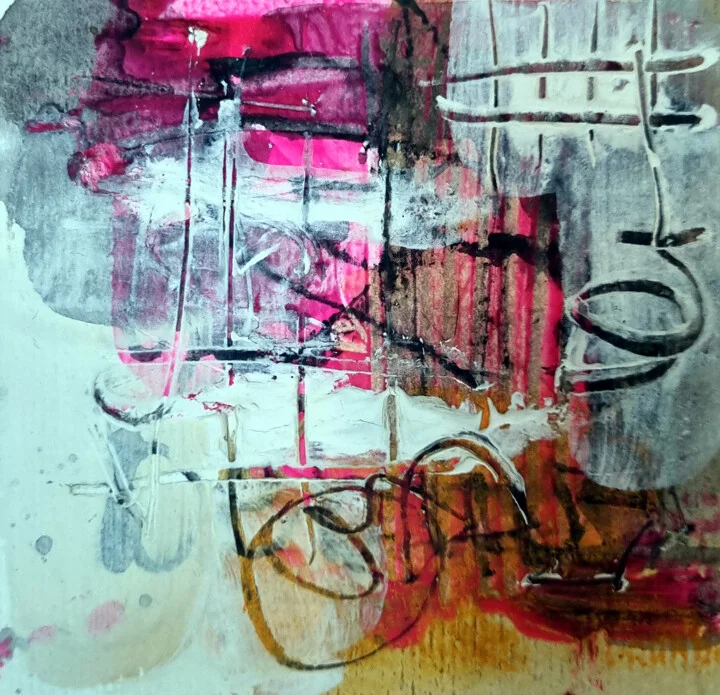Swirls of magenta blend with earthy tones across this 10 x 10 cm paper canvas. I let my finger brush against the wet ink, leaving a subtle smudge at the top that adds to its charm. The soft translucence allows light to play across the layered washes, revealing depth within the textures. Delicate strokes made with a fine liner create contrast against the fluid colors. This hand-painted original has a texture that can only be appreciated up close. I began this on a sunny afternoon, inspired by the bright colors of summer. This 10 x 10 cm abstract piece would bring lively warmth to the wall above your favorite reading nook. It's perfect for anyone who loves bold expressions of creativity and color. Ready to brighten your space.