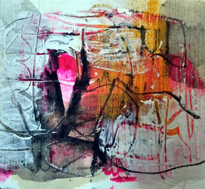 Bold magenta bursts through layers of blended ochre and black on this 10 x 10 cm canvas. A light brushstroke has left a lifted edge at the top, creating a hint of texture. A smudge of black ink seeps into the magenta as I worked quickly, resulting in a dynamic blend. The reflective surface catches light beautifully, showcasing the rich variations and depth. It’s an authentic hand-painted original with texture that draws you in. I started this on a bright morning, inspired by sunlight filtering through leaves. It evokes a joyful chaos, filling spaces with energy. This 10 x 10 cm abstract would be a spark of color above a small desk or creative nook. For anyone looking to liven up their artistic space with a dash of whimsy, it's ready to add warmth.