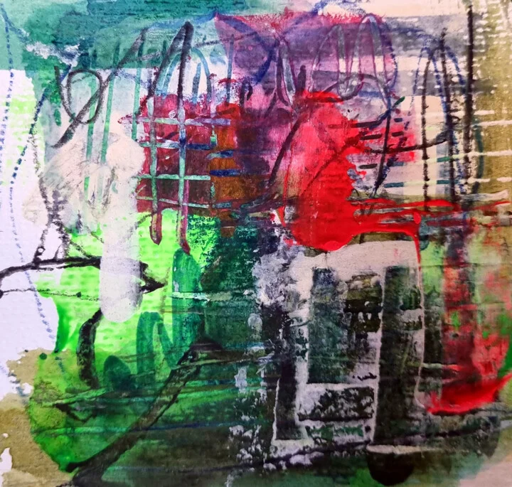Vivid greens dance with deep reds and ochres on this 10 x 10 cm piece. Using a fine liner, I created delicate overlapping grids, with a few uneven lines here and there showing my hand's touch. There's a faint texture from the paper that catches light, creating soft shadows. Some ink marks bleed into the vibrant colors, adding depth to the structured elements. This hand-painted original has rugged character uniquely its own. Inspired by the thick greens of early summer, I started this with energy in mind. It feels lively and inviting, perfect for bringing movement into a space. This 10 x 10 cm abstract would add vibrant energy to an art nook or hallway gallery. It's for anyone who loves color and a bit of chaos in their life. Come dive into the color with me.