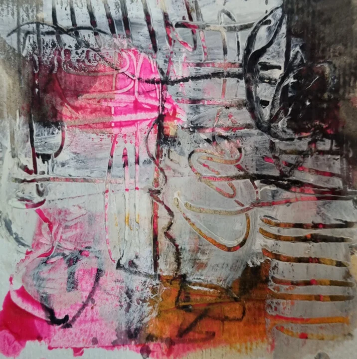 This 10 x 10 cm paper piece bursts with bright pink splashes mingling with muted gray and ochre. I used a large brush to create bold strokes, and you can see a faint smudge in the corner where paint lifted unexpectedly. The thick acrylic builds a rich texture that catches light beautifully, revealing delicate ink lines beneath. Hand-painted original with an engaging texture that draws you in. I painted this on a warm summer afternoon, and the vibrant hues remind me of joy. This 10 x 10 cm abstract would shine above your desk, perfect for anyone who craves inspiration from color. Can't wait for you to experience this!