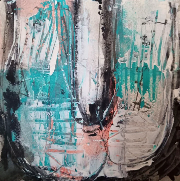 Bursting with vibrant turquoise swirls mixed with soft peach and charcoal accents, this 10 x 10 cm piece holds a playful energy. A faint smudge at the edge where my finger met wet paint captures that messy yet exciting studio moment. Thick layers reflect light uniquely, casting delicate shadows. This hand-painted original invites you in with its depth and layers. I started this on an early morning when the light felt just right. It's perfect for those who appreciate bold touches in decor. This 10 x 10 cm abstract would enhance your hallway charm or bring life to an office nook. It's for anyone looking for unique art that speaks to creativity.
