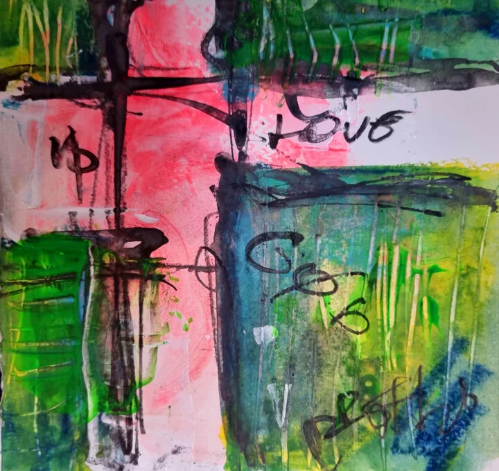 Bright pinks and greens intermingle across this 10 x 10 cm paper piece. I let the ink flow freely, and there's a stray mark near the bottom that adds a touch of character. The way the colors bleed into one another creates a lively sense of motion that resonates with spontaneity. Thin washes allow light to interact with the surface, revealing the textures beneath. Each stroke carries a story, highlighting the handmade nature of this work. I began this on a sunny morning, letting the colors guide my hand. It evokes a playful joy. This 10 x 10 cm abstract would bring a spirited touch to your cozy reading nook. Ideal for anyone who seeks art that sparks emotion and liveliness. Ready when you are.