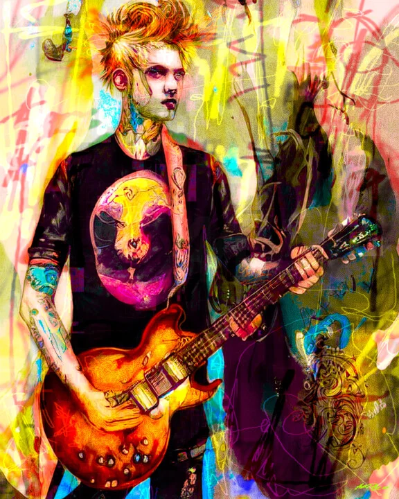 Bursting with vibrant yellows and dynamic splashes, this 38.1 x 48.3 cm digital artwork captures a guitar hero in action. I layered colors to create depth, emphasizing the electric energy of the scene. A few brush strokes overlap imperfectly, adding character to the composition. The interplay of sunlight and shadow enhances the overall vibrancy, making it pop off the surface. A print-ready piece that embodies excitement and passion. This artwork embodies my love for music and live performances. Its lively spirit would brighten any studio or creative space. Imagine this 38.1 x 48.3 cm piece hanging in your home, bringing joy and inspiration to daily life. I'm excited for you to choose a print medium that resonates with your style.