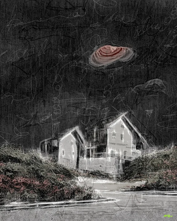 This high-resolution 76.2 x 93.98 cm artwork portrays two houses against a dark, moody landscape. The soft strokes create a subtle outline, while a bold red element in the sky adds an unexpected twist. I worked meticulously on the layers, and there's a tiny smudge near the bottom that adds personality. The play of light adds drama to the houses’ features. Hand-crafted original, ideal for close views. Recalling my coastal journeys, this piece embodies an eerie beauty. It’s a thought-provoking work perfect for quiet spaces. Envision this 76.2 x 93.98 cm piece displayed on a sleek acrylic panel in your dining area. It’s for those who love unique art that sparks curiosity. Here if you need it!