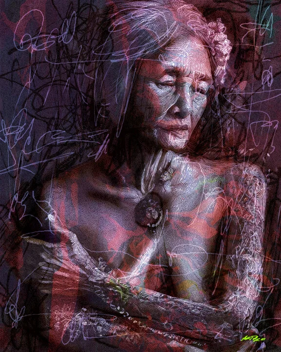 Featuring intricate lilac and deep burgundy tones, this 38 x 46 cm digital artwork captures a Native American woman in a captivating portrait. I employed fine brush techniques to layer textures, while contemporary neon-like scribbles add an unexpected twist. There’s a rough edge where I experimented with the background, giving it an organic feel. The shadows play across her features, creating emotional depth. This piece is perfectly suited for high-quality printing on various surfaces. Creating this piece was a journey through cultural histories that inspire me. It embodies strength and wisdom. Imagine this 38 x 46 cm artwork as a striking centerpiece in your hallway, drawing in viewers with its rich narrative. It’s for those who appreciate art that tells a story. Whenever you wish, I’d love for you to explore this creation.