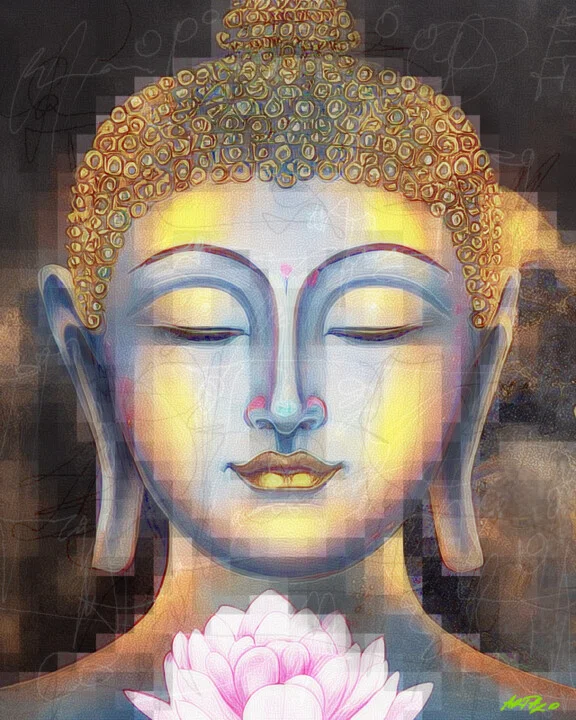 Original title: Pixeled Golden Buddha Digital Art Print