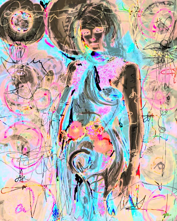 In this 76.2 x 93.98 cm digital artwork, pastel pinks and cool blues swirl together to create an engaging composition. I used a layering technique that adds texture and depth, allowing the figure to emerge from chaotic shapes. You might notice a faint line where I adjusted the colors, a handmade quirk that adds character. The interplay of light enhances the piece’s ethereal quality, making it almost come alive. This high-resolution file is ready for printing on various mediums. This piece reflects my exploration of identity and femininity through color. It radiates uplifting energy, making it suitable for a modern setting. Print this 76.2 x 93.98 cm artwork on aluminum for a chic touch above your stylish sofa. I'm here if you need help deciding on the best medium for your space.