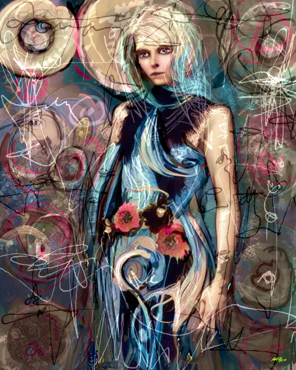 This vibrant 76.2 x 93.98 cm digital artwork captures a captivating figure amidst swirling aqua and crimson hues. I used various layering techniques to blend floral motifs with geometric elements, creating a sense of movement. A slight blemish exists where I transitioned colors, an imperfection that adds charm. Light creates a dynamic interplay across the surface, enhancing the fluidity of the piece. It's a high-resolution digital file ready for your preferred print medium. This artwork reflects a dream of a strong, confident woman. It generates a vibrant atmosphere, perfect for igniting creativity. Print this piece above your reading nook for an inspirational backdrop. You can choose the medium and size that best fits your space. Let this piece add a splash of dynamism to your walls!