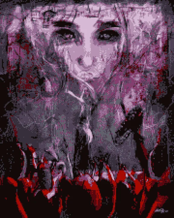 This 50.8 x 63.5 cm digital artwork fuses deep purples and reds, crafting a captivating ethereal portrait. The swirling colors create a veil around the figure, while distinct pixel elements add a modern texture. A slight pixelation near the edge adds character to the composition. Light interacts beautifully with the layers, deepening the sense of depth. This print-ready digital file is ideal for various mediums. Creating this piece was an exploration of how we all have layers of emotion and identity. It evokes mystery and introspection. Print this 50.8 x 63.5 cm artwork on metal for a striking addition to your bedroom gallery wall. You can choose the medium that complements your home best. I'm excited for you to bring this unique artwork into your life.
