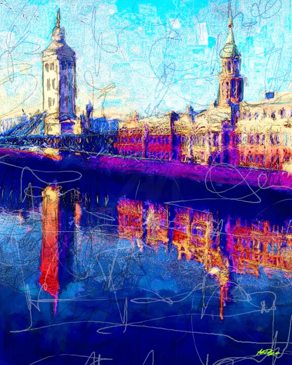 This 38 x 48.3 cm digital artwork captures the iconic Dublin Custom House, illuminated by vivid fuchsia and azure hues. I layered the colors to evoke a sense of liveliness, with swirling textures that breathe energy into the scene. There's a slight blur at the bottom from my brush, adding a handmade touch. The way light dances on the surface enhances the dreamy effect. This is a high-resolution file ready for prints on canvas or fine art paper. My time exploring Dublin inspired this piece, where the architecture felt vibrant under the evening sky. This artwork will bring an energetic vibe above your entryway table. It’s for those who cherish lively colors and memorable places. Just here when you need it.