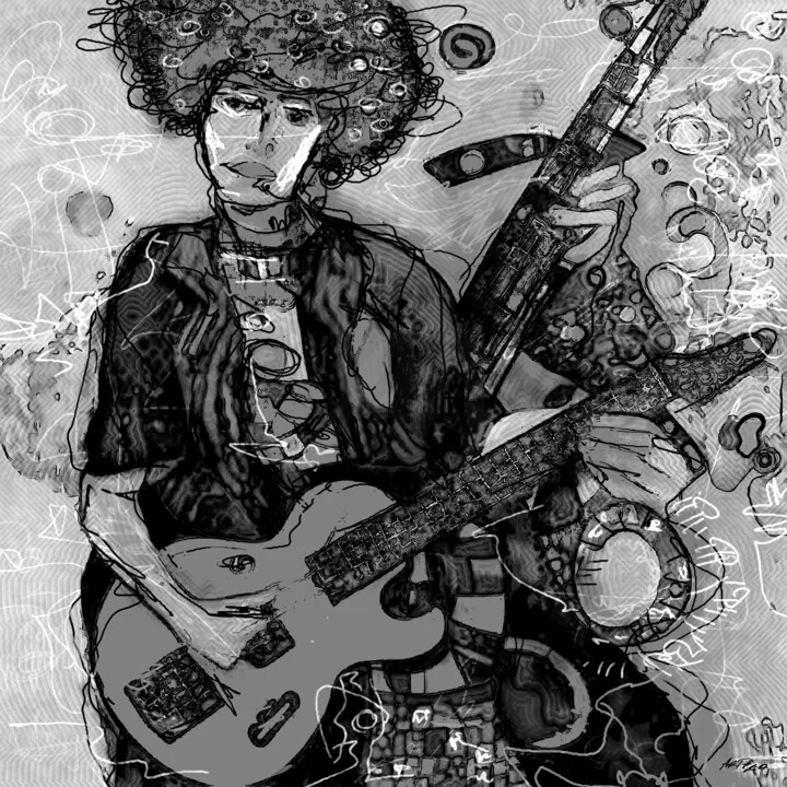 This high-resolution digital artwork measures 63.5 x 63.5 cm, capturing a guitarist in a bold black and white portrait. I blended sketch-like lines with swirls to echo the rhythm of music, and there's a slight area near the edge that shifted during painting. The layering technique adds depth, while bright flashes of white energize the darker tones. Light plays across the surface, enhancing the visual movement. Hand-painted original with a texture that draws you in. This piece channels my love for music into a visual form, reminding me of passionate jam sessions. This 63.5 x 63.5 cm artwork would be a standout in your music corner, perfect for anyone who values artistic expression. Whenever you're ready, I'm here to help you bring this unique creation into your space.