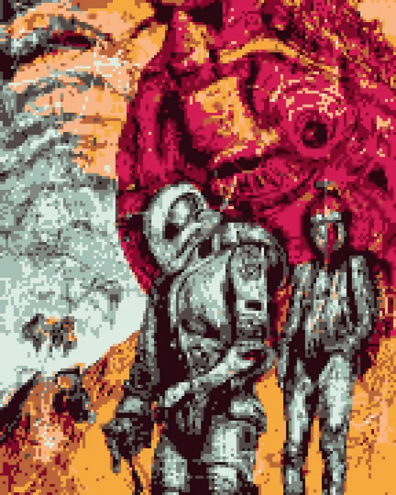 Pixelated Pinks and Oranges in Alien Scene