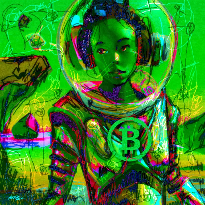 A vivid array of greens dominates this 51 x 51 cm digital piece featuring a cosmic girl. The abstract landscape behind her flows seamlessly, with layered techniques giving it depth. A small glitch near her suit adds a handmade feel that I love. The vibrant greens catch light dramatically, creating an inviting atmosphere. This hand-painted digital work is ready for your favorite print medium. Inspired by technology and art, I aimed to capture a sense of intrigue here. This 51 x 51 cm artwork would serve as a striking focal point in a tech-themed office. It's for anyone who appreciates modern aesthetics and playful designs. Here if you need it.
