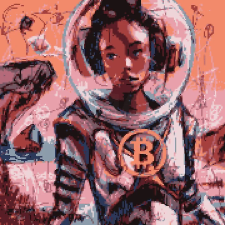 Warm coral and deep indigo hues blend in this striking 51 x 51 cm digital artwork of a space-themed portrait. I detailed the character’s features with layered textures, and there's a slight ripple in the paint near the bottom right. The light plays beautifully off the bold Bitcoin symbol on her chest, adding a contemporary twist. Handcrafted as a digital original, it’s ready for your desired print medium. Inspired by the fusion of technology and humanity, I wanted to convey excitement through exploration. This piece would make a stunning statement in your kitchen, inviting intrigue and conversation. It's for those who appreciate bold narratives in art. Explore this unique creation.
