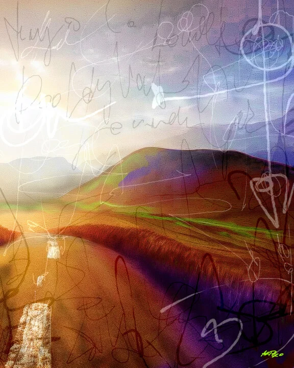 This vibrant digital artwork captures an abstract landscape with earthy browns and bright greens, measuring 50.8 x 63.5 cm. The textured layers create depth, with scribbled lines weaving through the hills, adding a whimsical element. There's a slight glitch in one corner where the color didn’t blend perfectly. Light plays across the surface, revealing the artwork's complexity. It's a high-resolution digital file, ready for print on multiple surfaces while retaining quality. Inspired by my travels through Ireland's landscapes, I sought to evoke freedom and nature's connection. The colors bring warmth and nostalgia, fitting for any home. Print this piece on acrylic for an eye-catching display in your dining area. It’s for those who appreciate art that tells a story. Can't wait for it to join your collection!