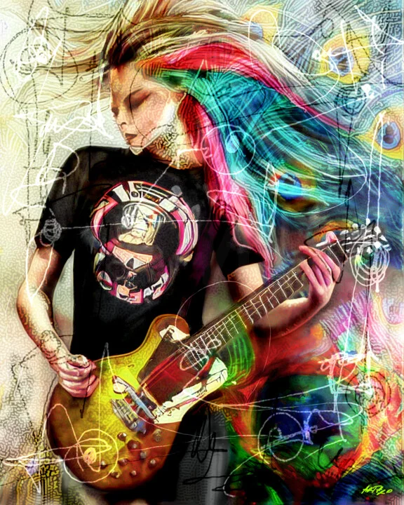 Original title: Colorful Punk Gitarist Woman Digital Art