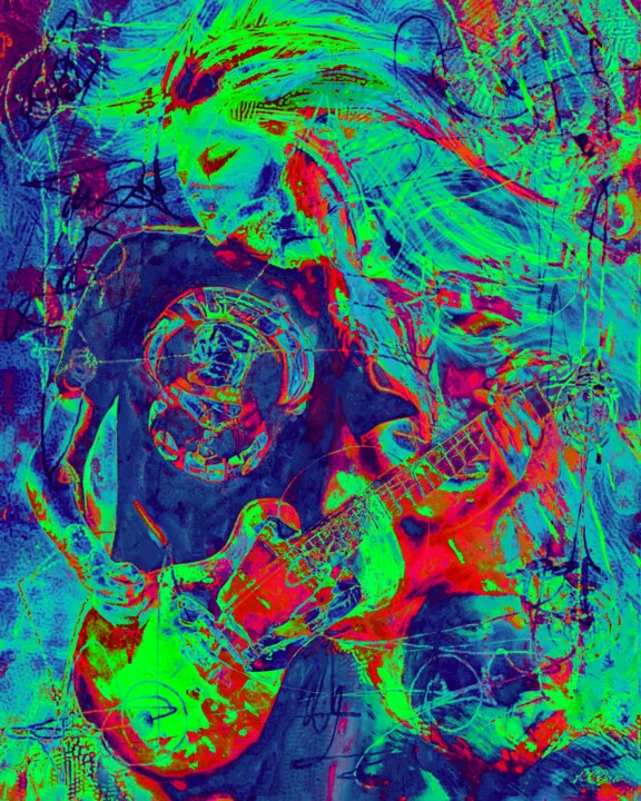 Original title: Neon Blue Green Punk Guitarist Digital Art