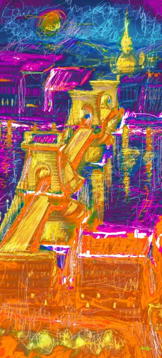 In this 51 x 112 cm digital piece, electric yellows blend with vibrant pinks, illustrating Budapest’s iconic architecture. The shimmering bridge draws the eye through layers of dynamic brushwork, while the reflective water below adds mesmerizing textures that dance under the night sky. I created a subtle lift in the bottom corner, where the brush didn’t lay perfectly flat, catching light in an unexpected way. The interplay of colors and light creates a lively atmosphere. Hand-painted original with a texture you’d have to see to believe. I designed this piece after marveling at Budapest’s stunning skyline while wandering the city at night. The colors evoke both energy and nostalgia. This 51 x 112 cm artwork would make an eye-catching centerpiece in your dining room. Perfect for anyone seeking unique art to spark conversations. Ready when you are.