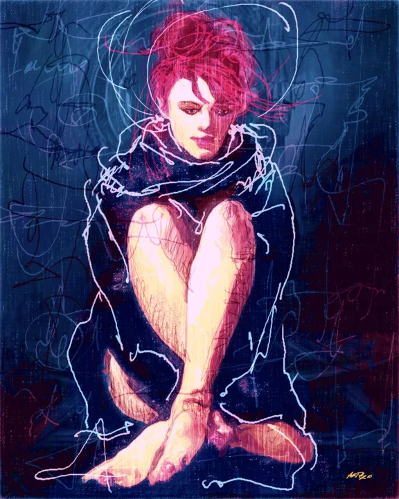 In this 60.96 x 76.2 cm digital artwork, vivid pink hues clash with deep blues to create an arresting contrast. The graceful figure of a woman flows against an abstract background, swirling with dynamic lines. I focused on intricate detailing that captures both softness and strength, leaving a few brush strokes slightly uneven around the edges for character. Light and shadow interplay throughout the composition, adding depth. Hand-painted original with a tactile quality you won't forget. Crafted with emotion in mind, this piece recalls moments of reflection. The vibrant colors convey energy and introspection. Print this 60.96 x 76.2 cm artwork on a stunning metal surface for a unique focal point in your bedroom. Ideal for those who appreciate expressive art. Ready when you are.