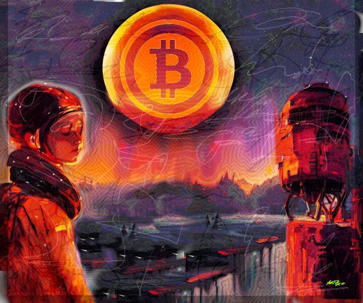 Martian Landscape with Bitcoin Digital Art