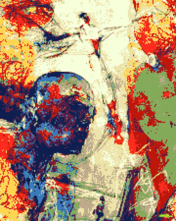 In this vibrant digital artwork, splashes of red, blue, and green collide, creating a sense of movement reminiscent of a dance performance. I layered translucent colors to form an ethereal figure emerging from the chaos, and there's a small area where the colors blend into each other, creating a unique texture. The play of light across the textures adds depth and intrigue. Digitally painted with an attention to detail that you'll appreciate up close. Creating this piece brought back the excitement of live performances, where every movement tells a story. This 50.8 x 63.5 cm artwork would be perfect above your entryway, inviting joy and imagination. It's designed for anyone who appreciates artistry in motion. Ready when you are!