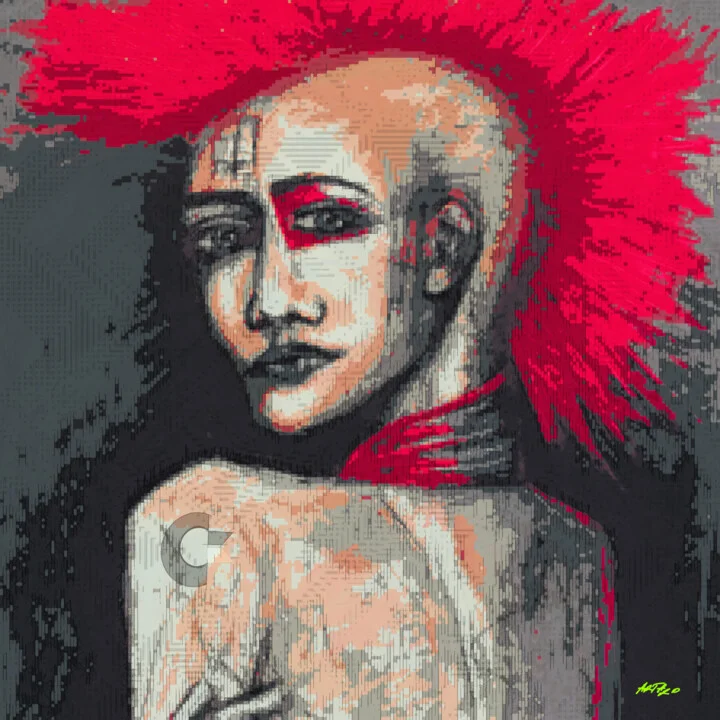 This 63.5 x 63.5 cm digital artwork explodes with aggressive hot pink spikes, embodying the essence of punk culture. I used layering techniques to create a textured feel, and you might catch a slight misalignment in some pixels, giving it a hand-crafted charm. Stark contrasts between deep blacks and bold reds amplify the subject's defiance, while light plays across the surface, bringing it to life. A high-resolution file ready for your chosen medium. Inspired by the rebellious spirit of punk music, this piece reflects freedom and confidence. It would be perfect for an entryway, making a bold statement in any home. You can choose the medium and size that best fits your style. Let’s bring this expression of art into your life!