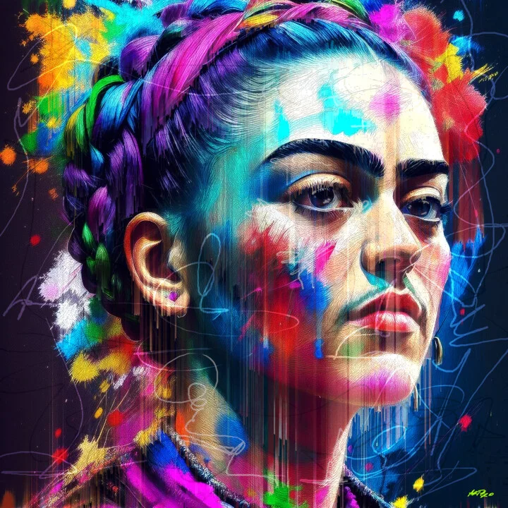 This vibrant digital artwork features a striking portrait surrounded by rich hues of magenta, turquoise, and yellow, spanning 76.2 x 76.2 cm. The layering technique highlights intricate details in the face, complemented by a small uneven area where the colors mix. Light plays across the surface, creating a lively dynamic. This high-resolution file is ready for printing on canvas or fine art paper, capturing the essence of vibrancy. Creating this piece resonated with the passion and vibrancy that art can evoke. It pulses with life, infusing any room with energy. A 76.2 x 76.2 cm print on metal would lend a contemporary touch to your living room. Perfect for anyone who loves bold colors and lively decor. I'm excited to see this brighten your walls!