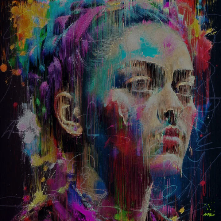 Vibrant magentas, teals, and yellows cascade across this 76.2 x 76.2 cm digital artwork, featuring a striking portrait set against a textured backdrop. Layers of color create depth, and a subtle drip imperfection enhances its dynamic quality. Light interacts with the colors, bringing a sense of movement to the piece. This print-ready file ensures you can reproduce it beautifully on canvas or fine art paper. Creating this artwork was a personal journey inspired by Frida Kahlo. The energetic colors reflect resilience and creativity, perfect for any space. Print this 76.2 x 76.2 cm digital piece on acrylic for a bold statement in your home office. I'm excited to see how it fits into your collection!