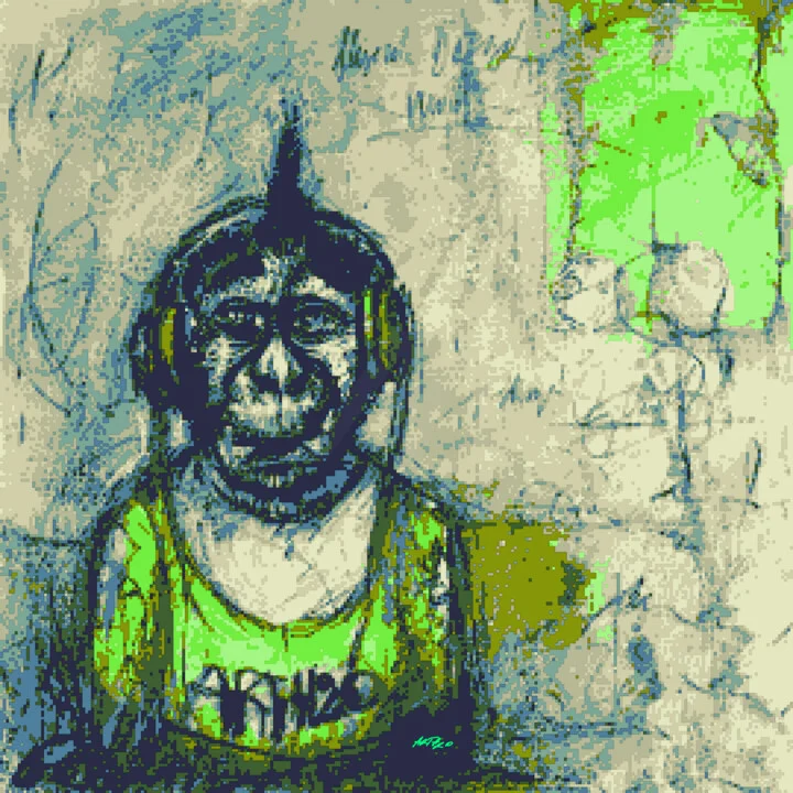 This high-resolution digital artwork presents a punk monkey in vibrant greens, measuring 76.2 x 76.2 cm. The color palette merges muted greens with neon accents to create visual tension. Unique pixel-like details enhance its edgy appeal, but there’s a small inconsistency in the texture that gives it a handmade feel. Light interacts beautifully with the vibrant colors, making the artwork pop. A hand-painted digital original ready to brighten up any room. Inspired by my love for music and expressive art, this piece brings energy to your space. Display this 76.2 x 76.2 cm artwork on your bedroom wall to create a lively atmosphere. It’s designed for anyone wanting a fun twist in their decor. I’m here whenever you're ready to dive in!