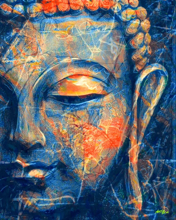 Deep navy blues intertwine with vibrant orange accents across this digital canvas. I used layering techniques to give depth to the serene Buddha figure, and you can see where I blended colors slightly outside the lines, creating a unique effect. The light catches the textured surface, enhancing the intricate patterns that seem to dance with shadows. This high-resolution digital piece is perfect for prints up to 51 x 64 cm, capturing every detail beautifully. Reflecting on ancient philosophies, I wanted to convey calm through this piece. The colors evoke tranquility, perfect for your meditation room. Print this 51 x 64 cm artwork on fine art paper as a striking focal point. It's ideal for those looking to add an inspirational touch to their space. I'm here if you’d like to know more!
