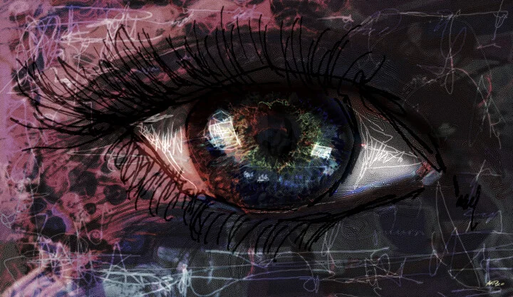 Capturing an eye with deep blues, this 88.9 x 63.5 cm digital art piece comes alive with intricate detailing. I used digital techniques to layer colors that create captivating depth. The fine lines of the eyelashes add a touch of femininity, and the abstract swirls of magenta hint at movement. You might notice a small area where the texture is more pronounced, giving it a handmade feel. Light plays beautifully on the surface, enhancing its vibrancy. This is a print-ready digital file for multiple mediums. The complexity of our emotions inspired me while creating this artwork. This 88.9 x 63.5 cm piece would serve as a stunning centerpiece in your home office, perfect for those who appreciate an artistic touch. Choose the medium and size that fits your style perfectly. I'm excited to share this with you!